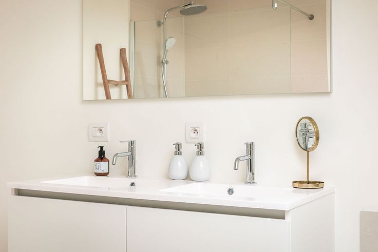 Badkamer uitgerust met bad, inloopdouche en dubbel lavabomeubel;