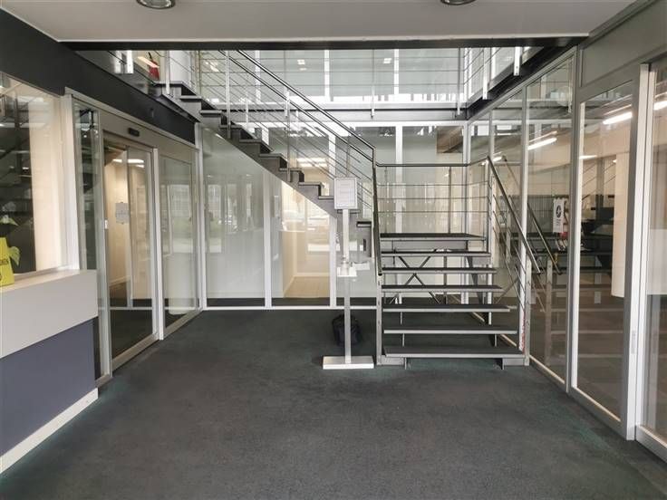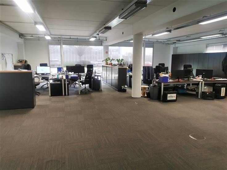 - Kantoren/showroom: Gelijkvloerse kantoorruimte/showroom van ca. 560 m² met aparte vergaderruimtes, kitchenette, sanitair.