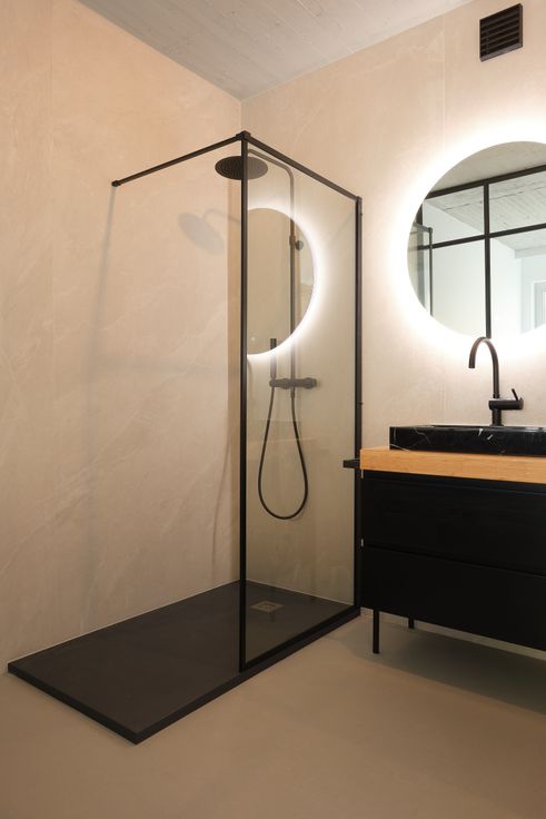 Via de verzonken deur in de houten lambrisering kom je in de nachthal met separaat toilet en het slaapgedeelte van 26 m2 met dressing, bureau en inloopbadkamer. Hier ervaar je een echt hotel gevoel. De inkomhal heeft een afgesloten vestiaire en een berging voor de wasmachine en droogkast.
