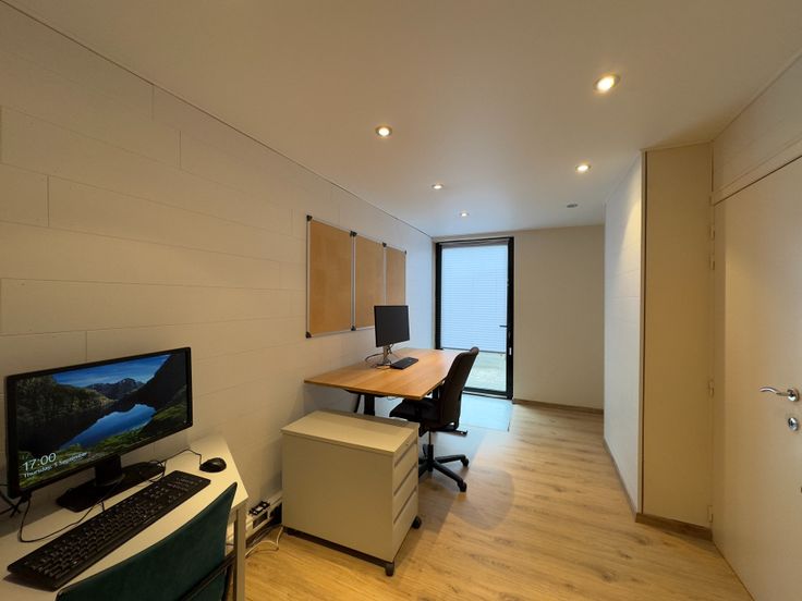 Handelspand is ingedeeld als volgt: open bureauruimte met open kitchenette, apart toilet, aparte badkamer, vergaderzaal en 2 aparte kantoorruimtes. Achteraan bevindt zich nog een ruim terras en vooraan zijn er 3 parkeerplaatsen beschikbaar voor het handelspand.