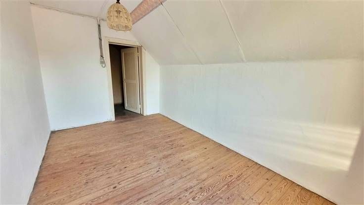 Au rez-de-chaussée, un couloir dessert un coin salon-salle à manger, une cuisine spacieuse avec un coin à manger, un WC, une salle d'eau et un bureau pouvant servir de chambre.