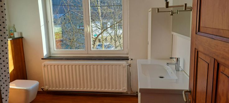 Maison de famille spacieuse, pièces de vie repeinte, cuisine semi-équipée (peut-être équipée à négocier), sdb en teck, 2 grandes chambres (16 m²) et une petite (12 m²), grand grenier aménageable (45m²), capteurs thermiques (10 m²) couplés avec chaudière OEKOFEN avec alimentation automatique et remplissage en vrac, 1cave-silo, cave rez de jardin à rénover