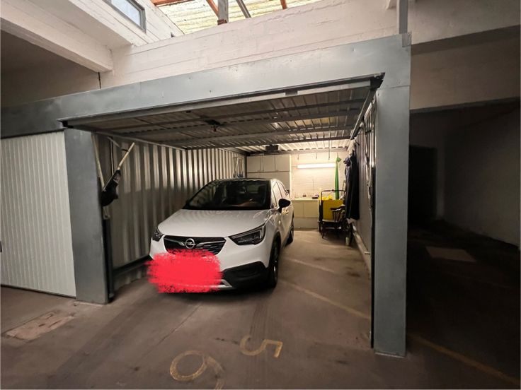 Via de hoofdpoort rijdt u de garageruimte binnen, er is voldoende manoeuvreerruimte voorzien.