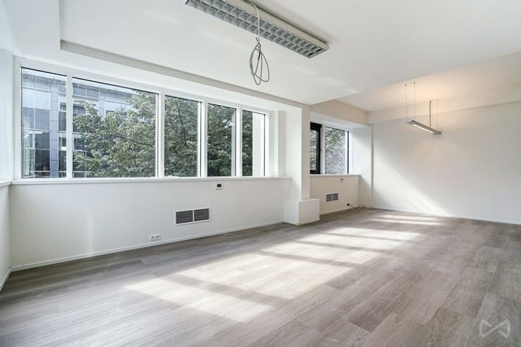 De onlangs gerenoveerde kantoren hebben grote ramen met dubbele beglazing voor optimale isolatie, elegante vloeren en een plafondhoogte van 2,85 meter. Luchtverwarming en zorgvuldige verlichting zorgen voor een aangename werkomgeving.