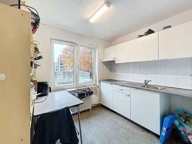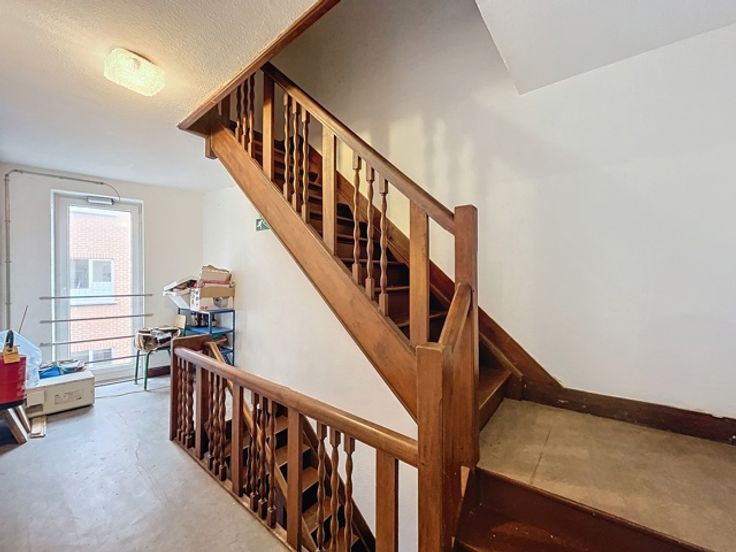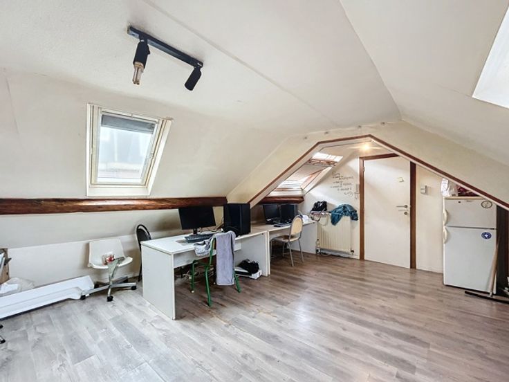 Cet immeuble de rapport, idéalement situé en plein cœur de Ciney, se compose de trois logements et d’une surface commerciale, le tout en ordre d’un point de vue urbanistique. Au rez-de-chaussée, une surface commerciale, actuellement occupée par un salon de coiffure et déjà louée. Le premier étage abrite un appartement une chambre d’environ 76 m² comprenant un séjour, un hall de nuit, une chambre, une salle de douche, une buanderie et une terrasse privative. Aux deuxième et troisième étages, l’immeuble dispose de deux kots, entièrement conformes avec des permis de location. Ces kots se composent, de deux chambres, d'un salon, d’une cuisine commune et d’une salle de douche. L’ensemble du bâtiment est également équipé de caves sur toute sa superficie.