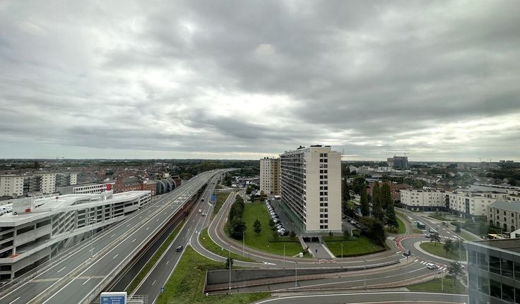 Ligging: op de hoek van het Zuidviaduct aan de voet van afrit E40/E17 en Gentse stadsring R40, aan bushalte, op 1,5 km van stadscentrum, visibiliteit vanop afrit