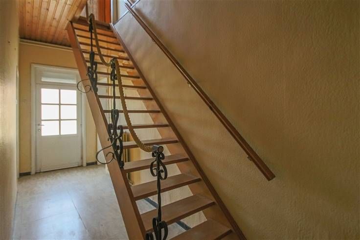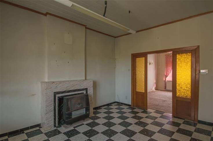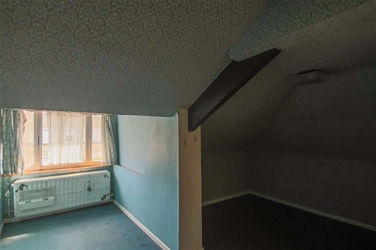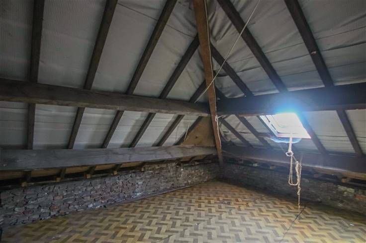 Rez: élégant hall distribuant le living et 2 pièces idéales pour cuisine, séjour, bureau, chambre, ... coin cuisine, WC. 1er étage: 1 chambre, grenier aménageable en 1 à 2 chambres.