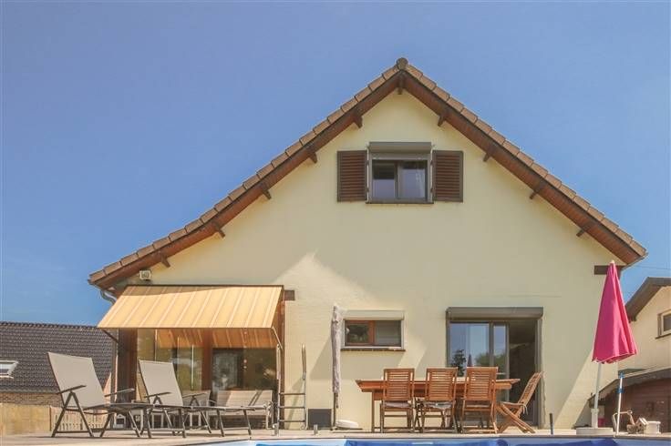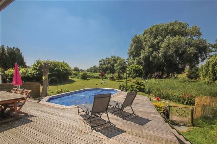 Sorry er is geen nederlandse vertaling beschikbaar. Dans un agréable quartier, belle et confortable VILLA rénovée en 2014 avec piscine se composant comme suit: Rez: véranda, hall, cuisine équipée récente, living (insert au gaz), WC, salle de douche (à installer) avec buanderie, chambre avec dressing. Etage: hall, 3 chambres avec combles, salle de bains (douche/baignoire balnéo). Caves sous toute la superficie de la maison et garage en sous-sol. Terrasse en bangkirai avec piscine chauffée (4m sur 6m, profondeur1m10). Vaste terrain avec portail électrique et hangar adapté pour chevaux. Parking avant. Intérieur cosy disposant d'un équipement de qualité (adoucisseur d'eau, nouveaux DV et volets, CC gaz, citerne à eau de pluie, alarme). Offre actuelle à 285 000€.