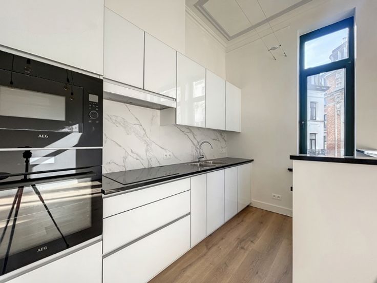 In het hart van de Zavel, luxueuze triplex met twee slaapkamers en een onberispelijke afwerking met een totale oppervlakte van 155 m² gelegen op de 2e verdieping van een prachtig Maison de Maître. Het bestaat op de 1e verdieping uit een woonkamer met volledig uitgeruste keuken. Op de 2e verdieping een 1e slaapkamer (± 25 m²) met kleedkamer en aangrenzende doucheruimte. Op de 3e verdieping een 2e slaapkamer (± 30 m²) en een badkamer. Een uitzonderlijk pand in een van de meest prestigieuze delen van de hoofdstad. Extra informatie: individuele meters. Kosten: € 25/maand (vast tarief voor het onderhoud van de gemeenschappelijke ruimtes). PEB E. Zo snel mogelijk ontdekken bij Vaneau Lecobel!