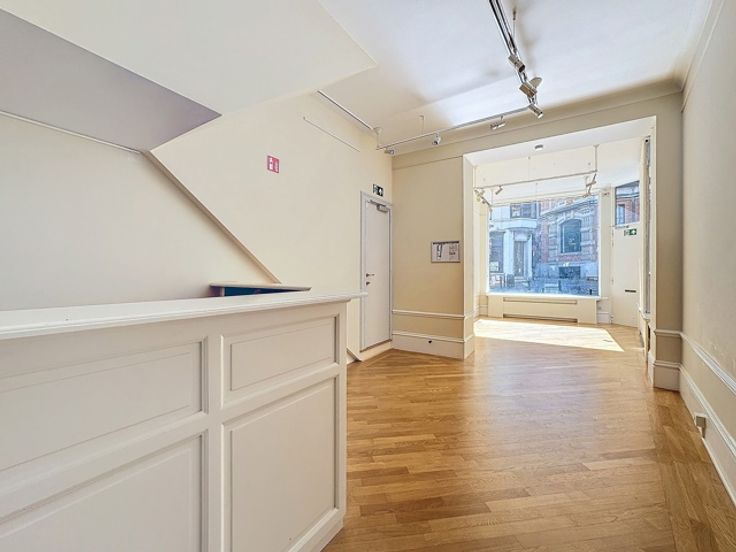 Gelegen in het hart van de prestigieuze Zavelwijk, prachtige commerciële ruimte op 3 niveaus, volledig gerenoveerd met een totale oppervlakte van ± 140 m² in een prachtig huis in eclectische stijl gebouwd in 1895. Deze laatste bestaat uit een kelder van 2 inbouwoppervlakken oppervlakte van elk ± 20 m². Op de begane grond 3 aangrenzende kamers (18m², 16m² en 14m²) met een prachtig hoekraam. De eerste verdieping bestaat uit een kantoorruimte met een kluis, een kitchenette en een toilet. Gepantserde deur, alarmsysteem en beveiligd glas. Alle tellers zijn individueel. Onroerende voorheffing (€ 2.476,72) ten laste van de huurder. Zo snel mogelijk ontdekken bij Vaneau Lecobel!