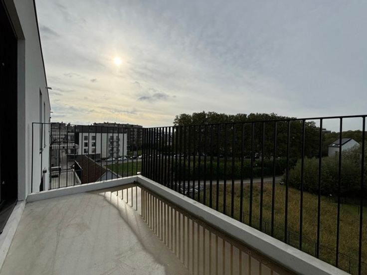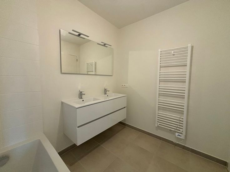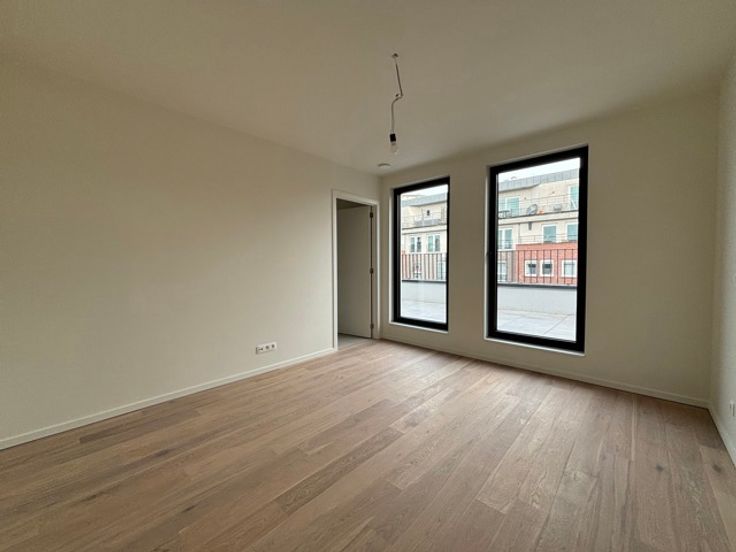 EVERE - Gelegen in een rustige, stedelijke woonwijk dicht bij een breed aanbod van faciliteiten en vervoersverbindingen (scholen, winkels, luchthaven, NATO, bus, station Evere, Ring, E40, enz.), prachtig PENTHOUSE (3slpk/1badk/1douche) van 104,29 m² met twee TERRASSEN van 8,3 m² en 26,3 m². Gelegen op de 4e en laatste verdieping, bestaat het uit een inkomhal, een woonkamer van 35,5 m² die uitkomt op de twee terrassen, een volledig uitgeruste open keuken grenzend aan een wasruimte, een nachthal, een WC, een master bedroom van 14,2 m² met directe toegang tot het hoofdterras en een en-suite badkamer (dubbele wastafel, bad), twee andere slaapkamers (10,5 en 9,1 m²) en een douchekamer (wastafel, douche). De leefruimtes zijn licht en luchtig, en het uitzicht aan de achterkant is groen en vrij. Het met zorg gebouwde gebouw van 4 verdiepingen biedt een hoge afwerkings- en uitrustingsstandaard, evenals een hoogwaardige isolatie. EPC B+. Mogelijkheid tot aankoop van een kelder tegen meerprijs. Parkeerplaats in extra. Gemeenschappelijke fietsenberging beschikbaar. Verkoop van de grond onderworpen aan registratierechten (12,5%) en van het gebouw onderworpen aan BTW (21%). Meer informatie bij L&P !