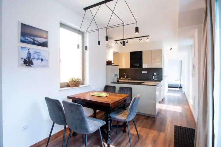 • Salon : Agréablement aménagé, comprenant un canapé, une table basse, 2 fauteuils, et une table à manger avec chaises, le tout dans un espace lumineux grâce à de grandes fenêtres.