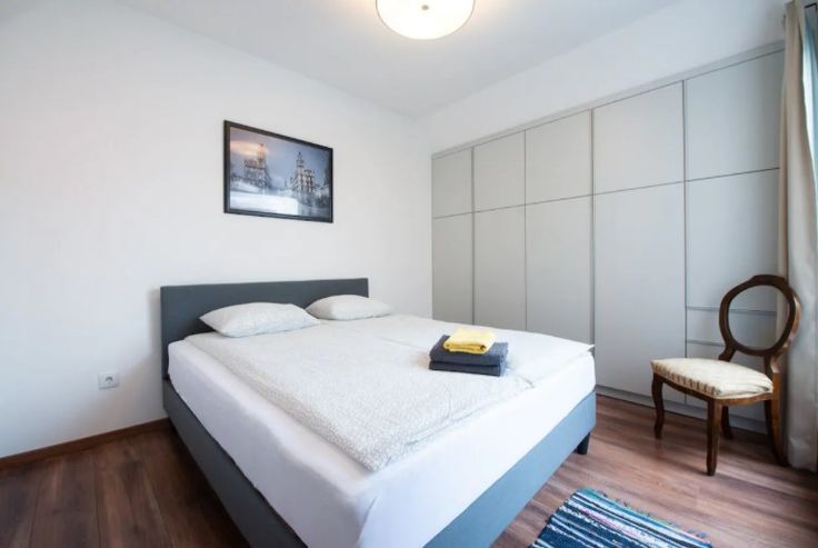 • Chambre : Une chambre spacieuse, équipée d’un lit double, de placards intégrés.