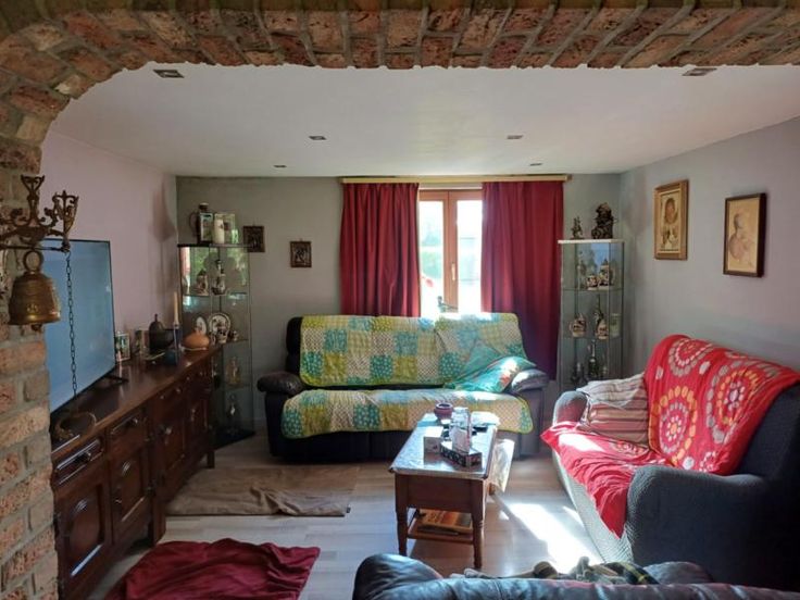 Nous proposons en rente viagère avec réserve d'usufruit, une maison d'habitation plain-pied située dans un cadre paisible à Marchin, Chemin de la Sablière 2 A. Cette charmante maison plain-pied est idéale pour les amateurs de tranquillité. Composition: rez: salon, living, cuisine équipée, salle de douche (douche, évier et WC) et une chambre; étage mansardé: deux chambres et un bureau. Jardin avec abri. Poële à pelets. Fosse septique. Publicité non contractuelle.