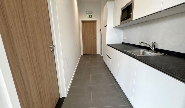 Specificaties kantoor: landschapskantoor built-to-suit, aluminium schrijnwerk met zonwerend isolerend glas, inbouw led-armaturen met bewegingssensoren, warmtepomp met ventilatiesyteem D met warmterecuperatie, BREEAM: very good