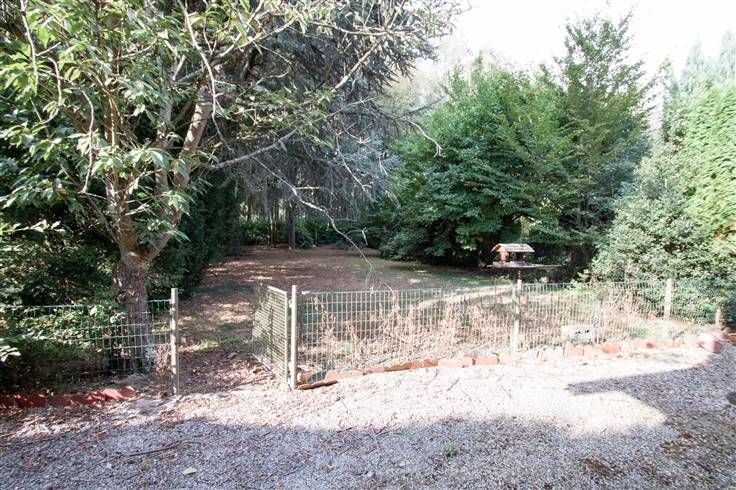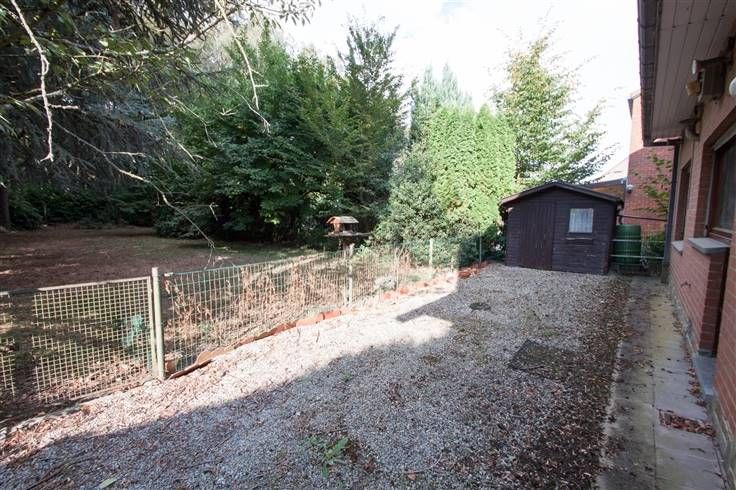 Jardin entièrement clôturé, abri de jardin.