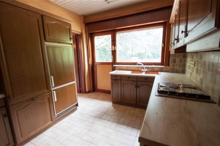 - Rez: Hall d'entrée, WC, grand bureau, living + salon, cuisine et arrière cuisine, accès cave et garage