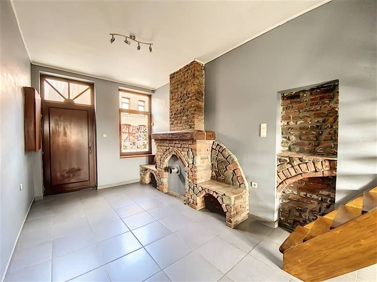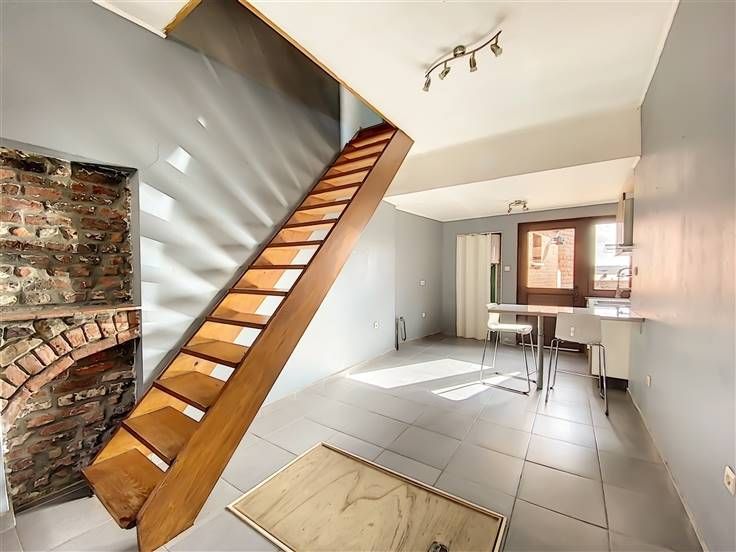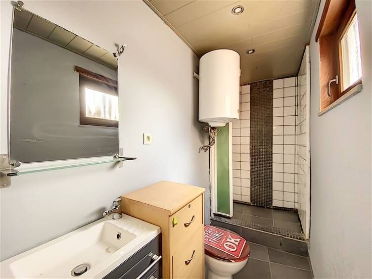 Au rez : living avec cuisine ouverte semi-équipée, salle de douche avec wc.
