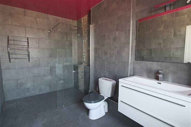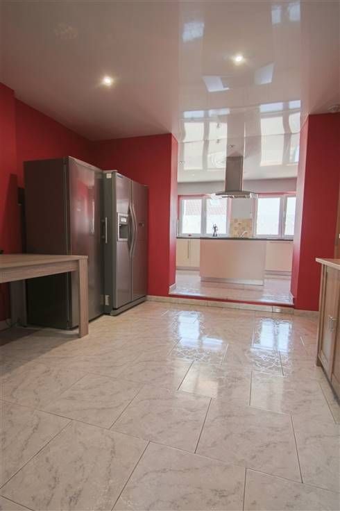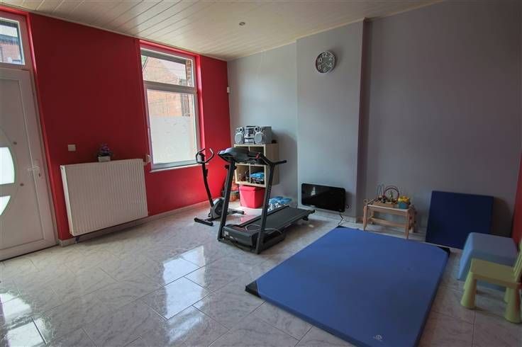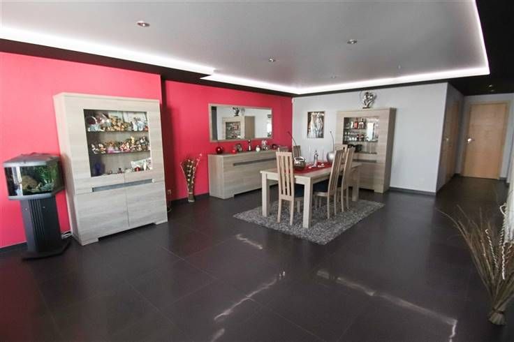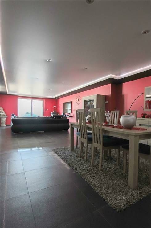 Au rez: grande pièce avant pouvant servir de bureau, salle de séjour, cuisine équipée, très grand living, WC séparé, accès garage.