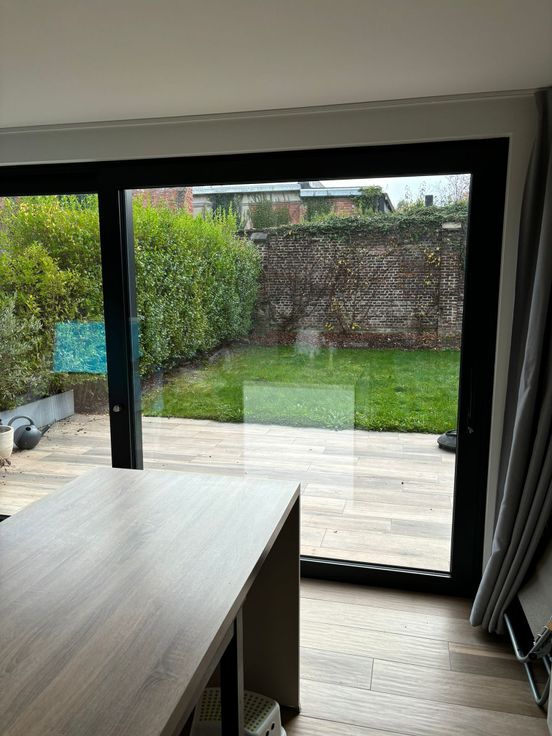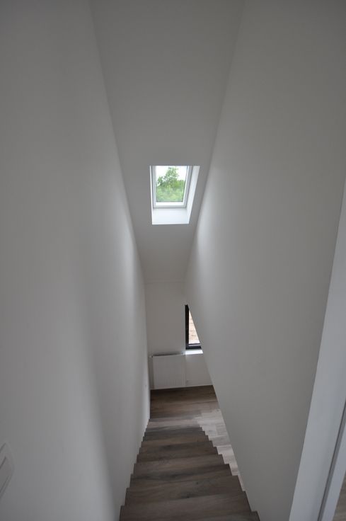 Belangrijke opmerking: meeste foto’s werden genomen na oplevering, en tonen nog enkele foto’s van een tuin in aanleg en trappen zonder trapleuning die nadien wel werd geplaatst (zie ook foto).