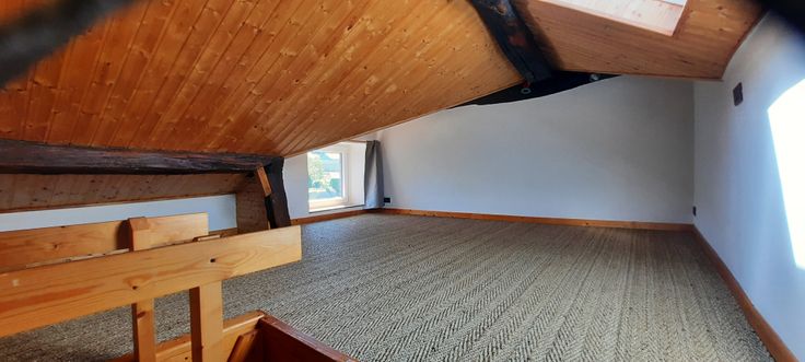Superficie habitable de 185m², 2 chambres dont une avec mezzanine, 1 salle de bain et 2 WC. Nouveaux châssis.