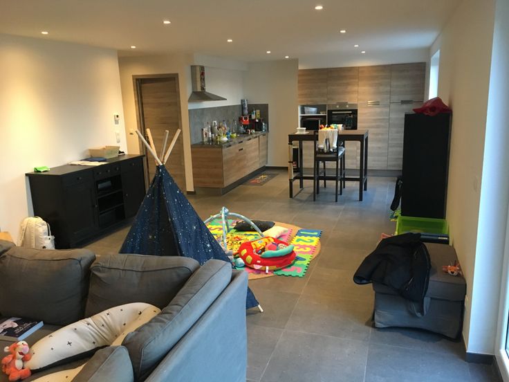 L’étage comprend : un appartement composé d’un palier, un wc séparé, un living (salon/salle à manger) ouvert sur une cuisine équipée, trois chambres, une salle de bains.