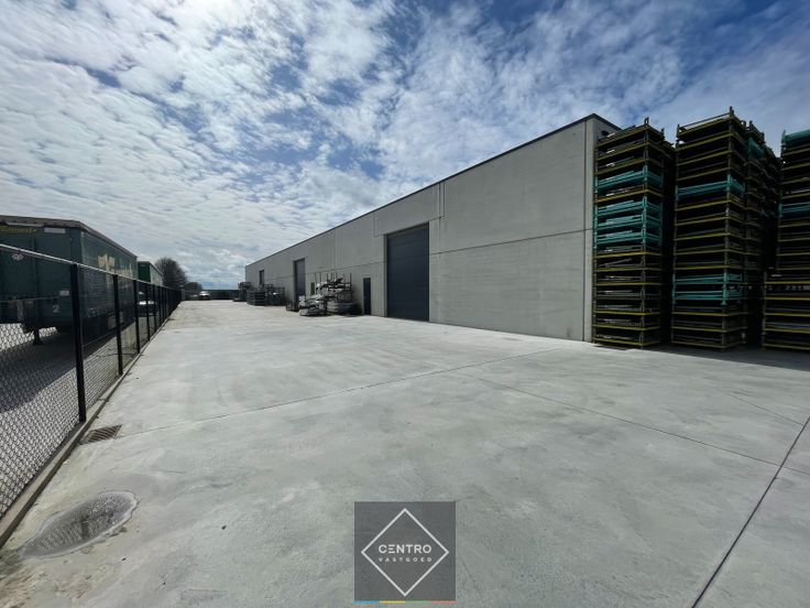 Metalen constructie met overspanning van 18m - gepolierde betonvloer - geïsoleerd plat dak met centrale lichtstraat - 2 elektrische sectionaalpoorten (h: 4,5m - b: 4m) met afzonderlijke loopdeur - vrije hoogte: 5m (nok: 6m) - overal LED-verlichting (schakelaar per beuk) - voldoende stopcontacten - omheind - toegangspoort.