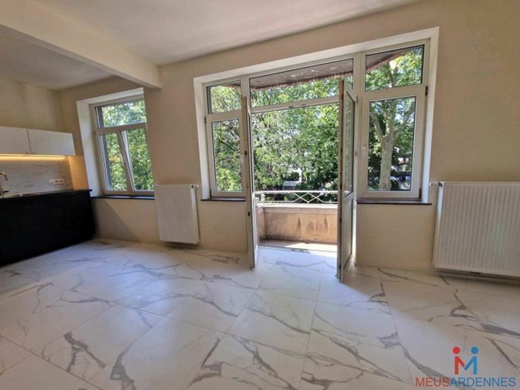 Superbe appartement en ville, proche de la gare Situé au 3e étage avec ascenseur. Compo : hall d'entrée, séjour ouvert sur une cuisine entièrement équipée, balcon , 2 belles grandes chambres dont une avec terrasse , salle de bains, toilettes séparées avec lave-mains et cave. Loué 850 €/mois + charges Infos & visites : 0475 23 57 29 Renseignements donnés à titre informatif, et non contractuel. Les surfaces indiquées, mêmes reprises comme "habitables", correspondent aux surfaces mesurées dans le PEB.