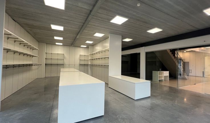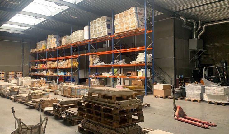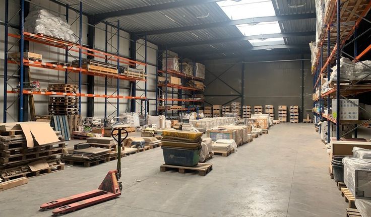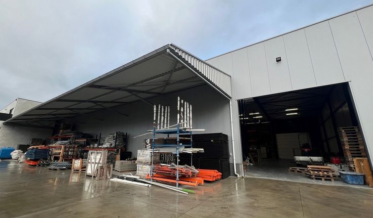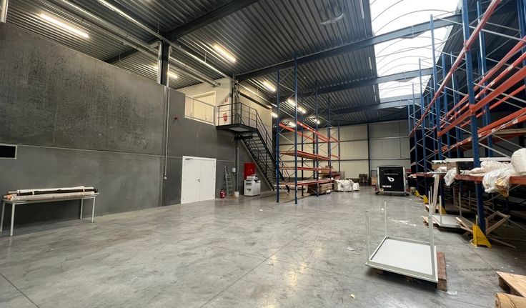 780m² magazijn met 267m² mezzanine, 460m² kantoren/showroom, parking en 200m² overdekte buitenstockage