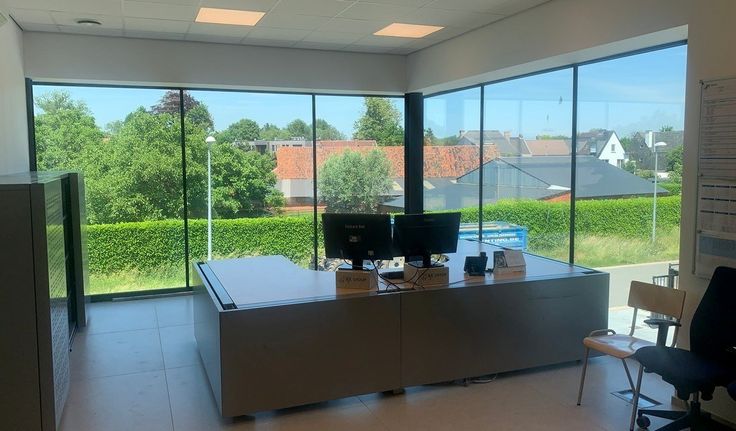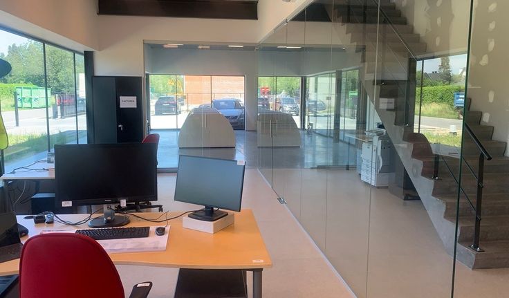 Specificaties kantoren/showroom: aluminium schrijnwerk met dubbel glas, deels ingedeelde ruimte, verlaagd tegelplafond met inbouw led-armaturen, databekabeling, keramische tegelvloer, sanitair en kitchenette, airco, warmtepomp, mechanische ventilatie, telenetaansluiting, mogelijkheid tot publiciteit op dak