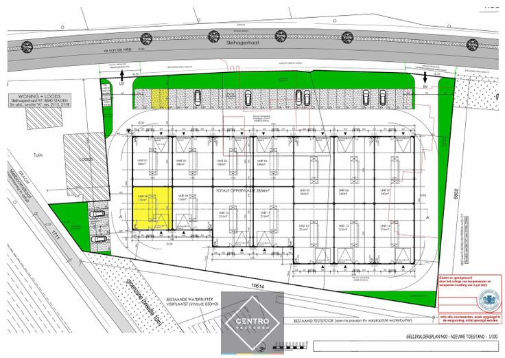 Per unit is er een RW-put van 5.000 liter voorzien. Deze regenput is voorzien van een aanzuigleiding socarex (1 per unit), exclusief pomp.