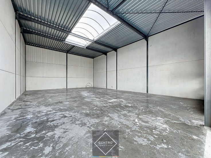 - Gepolierde en gewapende betonvloer (15cm), in vakken gezaagd om krimpscheuren tot een minimum te herleiden.