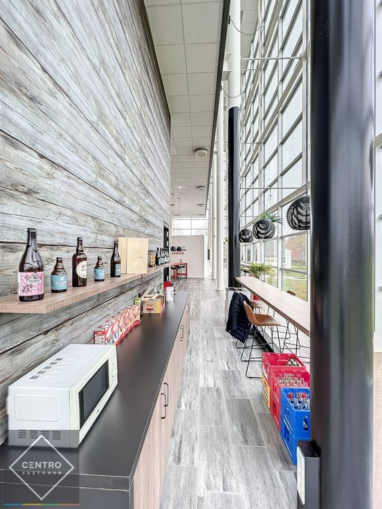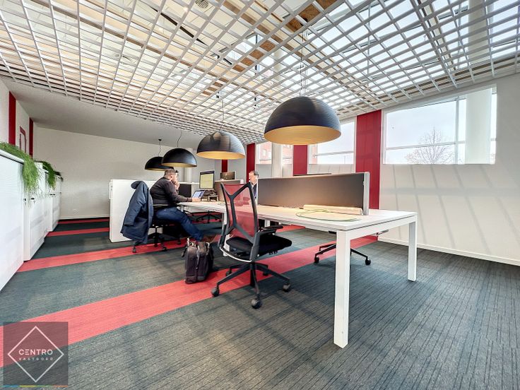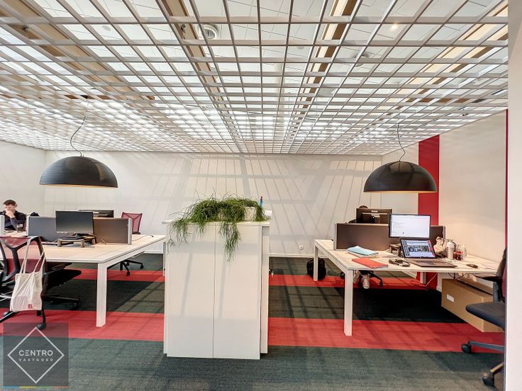 Bevloering in tegels en vasttapijt - muren bepleisterd en geschilderd - systeemplafonds met ingewerkte luidsprekers, spots, verluchtingsroosters, rookdetectoren én sprinklersysteem - dubbele beglazing met ALU-schrijnwerk - stopcontacten en internetaansluitingen (wand -en vloerdozen) - wandkasten - maatmeubilair - alarm - airco.