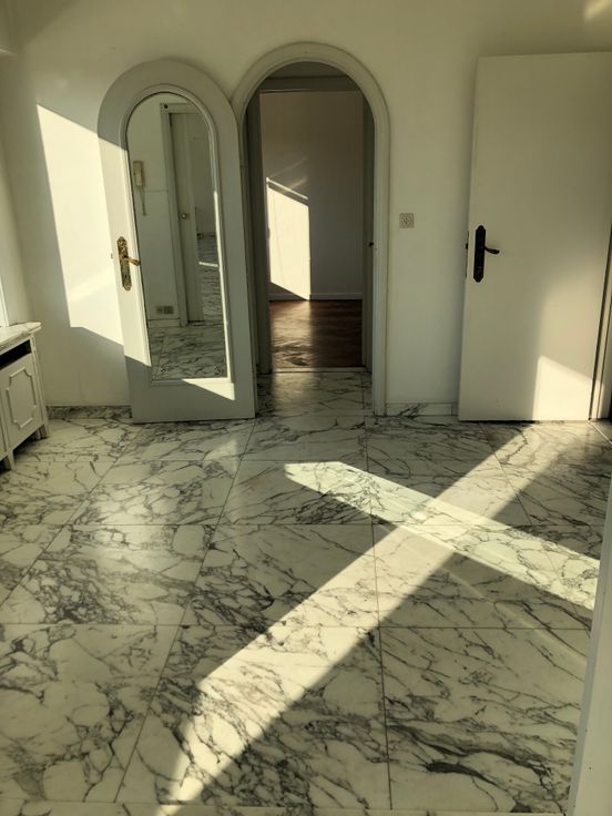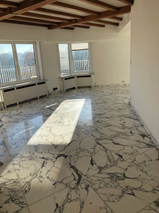 2 chambres (19M2 ET 12M2), bureau 7m2,salle de bain, salle de douche, 2 WC, cuisine équipée. Charges 400 €Chauffage et eau chaude compris Mazout, 2 caves ainsi que deux petites terrasses.