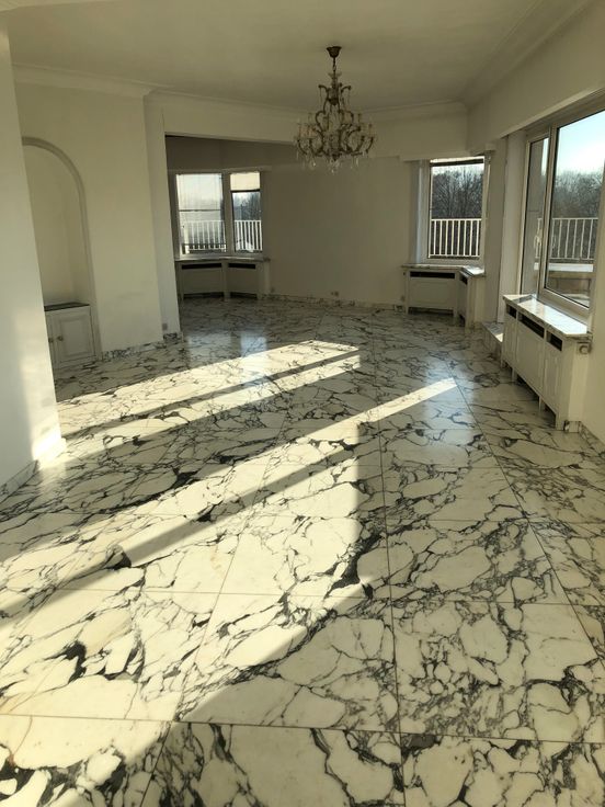 la prestigieuse avenue de la Croix Rouge (face à le Pergola), à 5 minutes de l'école Européenne, à 50mètres des transports en commun et à 400 mètres des commerces (De Wand), comprenant un vaste séjour de +/-60m2 avec feu ouvert ( offrant une vue imprenable sur le domaine Royal de Laeken)