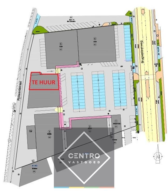 De winkel is zowel bereikbaar via de achtergelegen Robaardstraat als via de Brugsesteenweg.