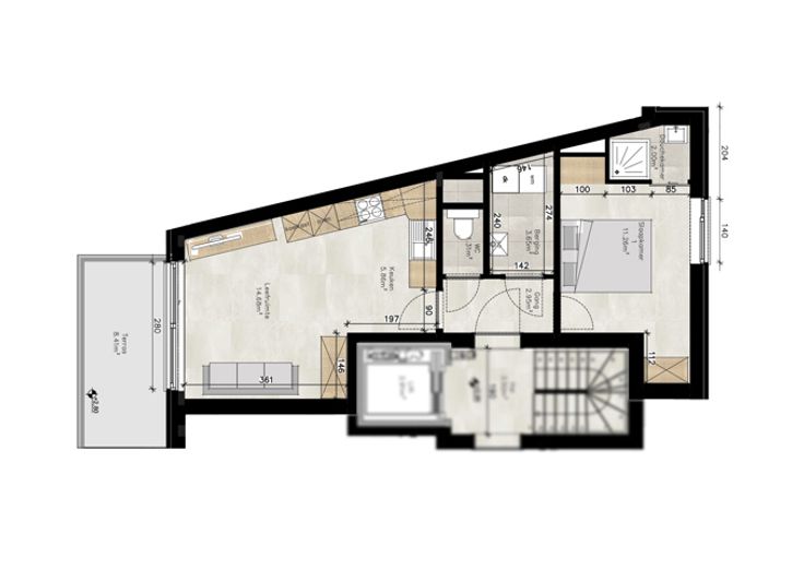 Te huur Prachtig nieuwbouw appartement met 1 slpk en terras