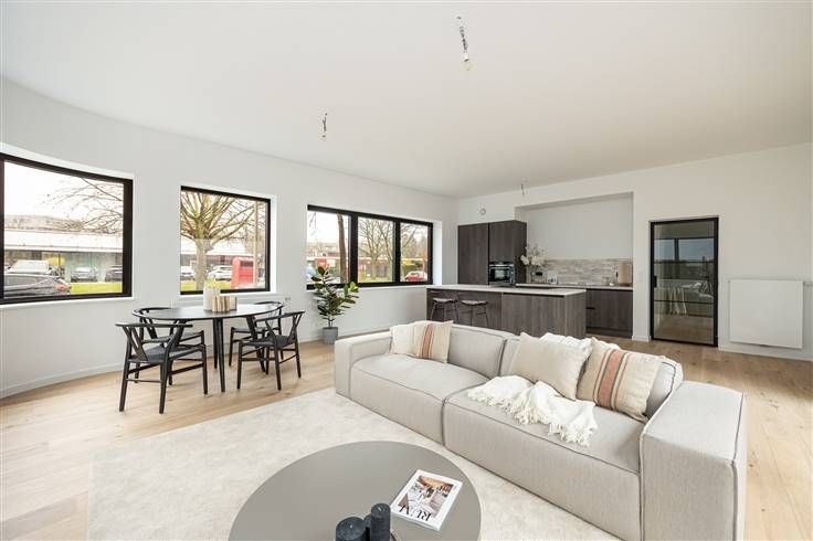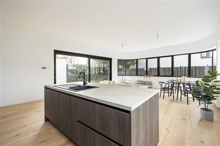 Architectuur met véél daglicht? Check. Niets meer te verbouwen? Check. Terras een must? Check. Lees snel meer over dit vernieuwbouw appartement. Gelegen in de gegeerde Elsdonck wijk, nabij het centrum van Edegem en om de hoek van Fort V. Een locatie te midden van talloze troeven, een supermarkt op 20 m, scholen, ziekenhuizen, padel, hockey, golf, voetbal, you name it… allemaal op fietsafstand. Openbaar vervoer en deelvervoer naast de deur. Verder zit je direct aan grote invalswegen en op- en afrit van de Antwerpse ring en E19. - Top notch vernieuwd in 2024 - Verkoop onder registratiestelsel - Kleinschalig gebouw met lift en fietsenberging - Terras - tuin Het gelijkvloers appartement met tuin is gelegen aan de rechterzijde van het gebouw. De inkomhal met vestiaire en berging geeft uit op de leefruimte. De hal en leefruimte worden gescheiden door een stalen deur met glaswerk en een doorgetrokken parketvloer. Tuinzicht en een schitterende lichtinval dankzij de huge (gebogen) raampartijen. De open keuken met eiland werd voorzien van alle toestellen. Vooraan 2 ruime slaapkamers die een badkamer delen. De badkamer voorziet een inloopdouche, wastafel en handdoekdroger. Verder nog een technische berging met aansluiting wastoestel en droogkast. Alle nutsvoorzieningen op privatieve meters. Aandeel basisakte € 900. Benieuwd? Don’t wait until it’s too late! Bezoek? 03 283 05 00 – stad @sinjoor.be