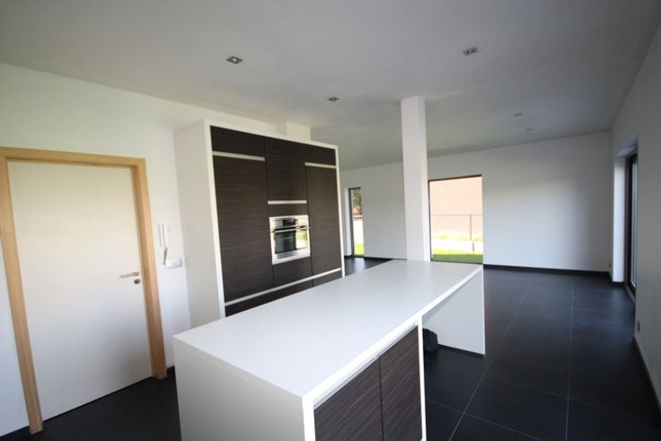 • Gelijkvloers: hal met toilet, en een ruime woonkamer met volledig ingerichte keuken. Aansluitend en een achterliggende berging/garage.