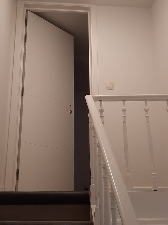 Op het tweede verdiep (via trap te bereiken) van kleinschalig gebouw.