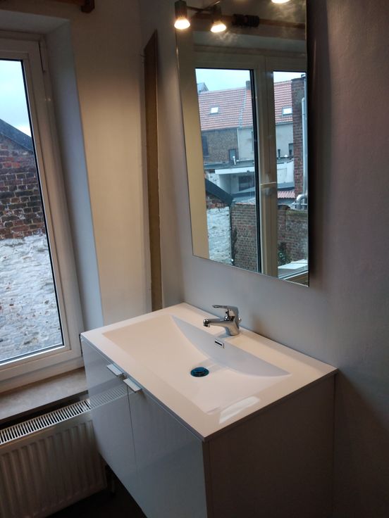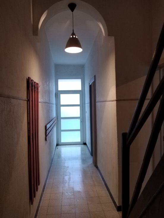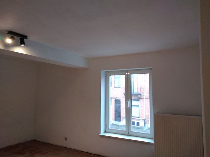 Eerste verdiep : keuken en living, traphal tweede verdiep : grote slaapkamer, badkamer, wc derde verdiep : grote slaapkamer onder het dak koertje, werkruimte en tuintje Kelder. Vlakbij station en winkels.