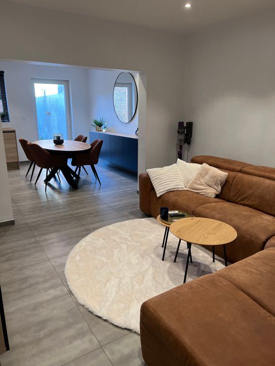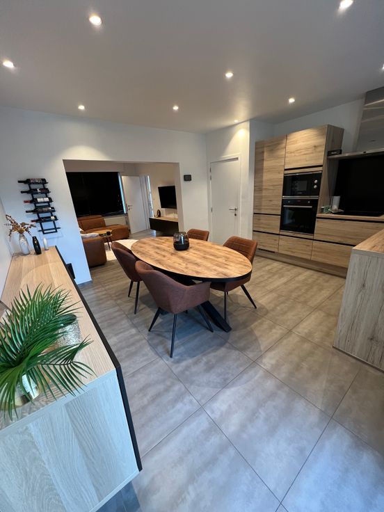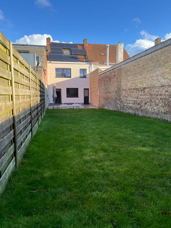 Deze gezellige, gerenoveerde rijwoning bevindt zich in het centrum van Eernegem. Bij binnenkomst word je verwelkomd door een uitnodigende inkomhal die toegang biedt tot een ruime en lichtrijke leefruimte, met een open, moderne keuken. De keuken is volledig uitgerust met toestellen, waardoor koken een plezier wordt.