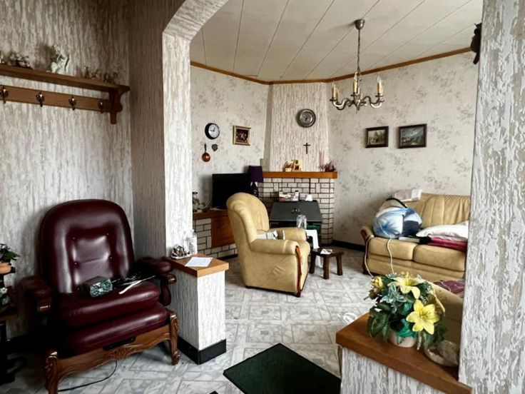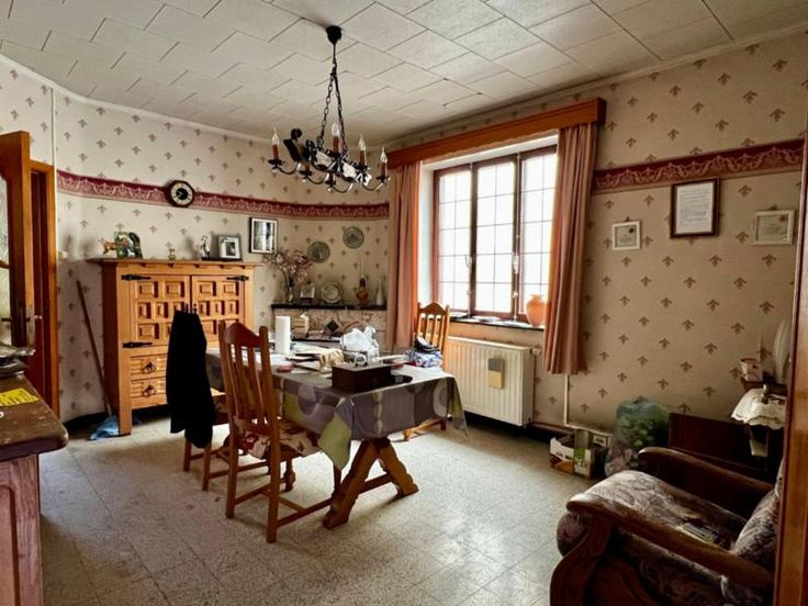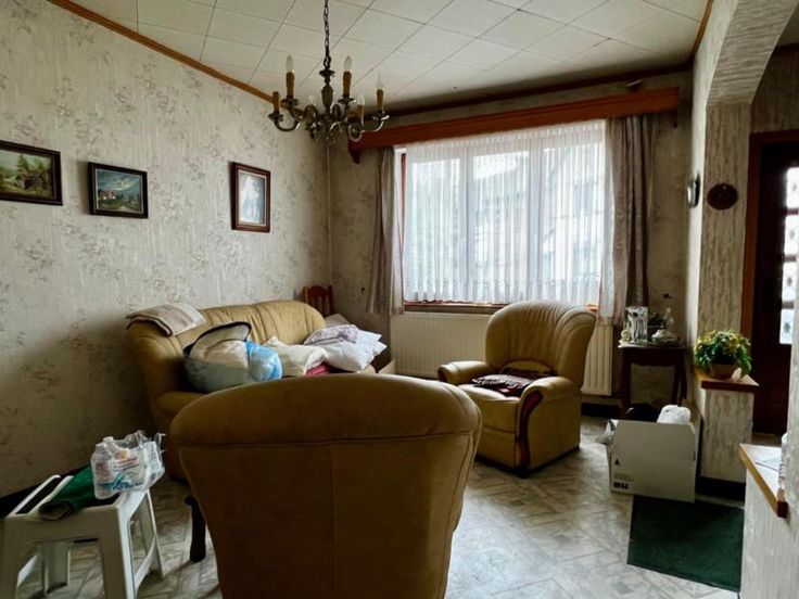 Renseignements et visite UNIQUEMENT sur rendez vous auprès de la société GIL 071/38.84.49 Bonne maison d'habitation de 3 façades, comp : cave, hall, salon, s à m, cuisine, arrière cuisine et toilette ; 2 chambres, salle de bain, garage et jardin