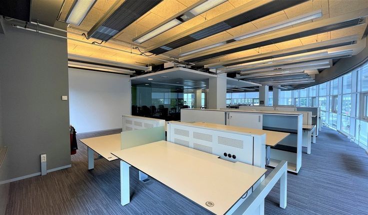 Specifcaties: pvc schrijnwerk met dubbel glas, verlaagd plafond met alu tegels, opbouw tl-armaturen en spots, verhoogde vloer met tapijttegels, kitchenette en gedeeld sanitair H/D, cv op gas, airco, receptie, toegangscontrolesysteem met badges, 3 liften, mogelijkheid tot 16m² archief en tot 12 parkings