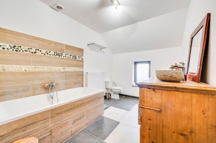 In het charmante dorpje Ambresin, afgelegen van de weg, dichtbij alle voorzieningen, op het platteland, vindt u rust en authenticiteit. Edele materialen, vergevorderde renovaties (nieuw volledig dak, elektriciteit, performante pellet- en glasvezelketel voor de winteravonden, vloerverwarming op het gelijkvloers, DV-chassis, PEB C!): instapklaar.