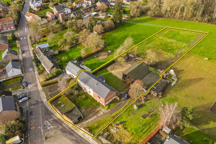de Marneffe real estate stelt u deze gedeeltelijk gerenoveerde hoeve voor (205m² woonoppervlak – 340m² mogelijk), op uitzonderlijke grond van ruim 40 hectare, met schuur, paardenboxen en weide. De schuur heeft een aanzienlijk potentieel.