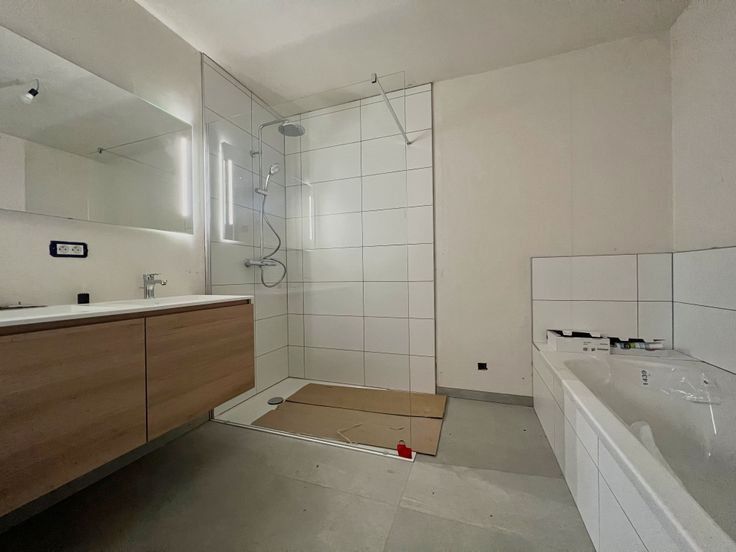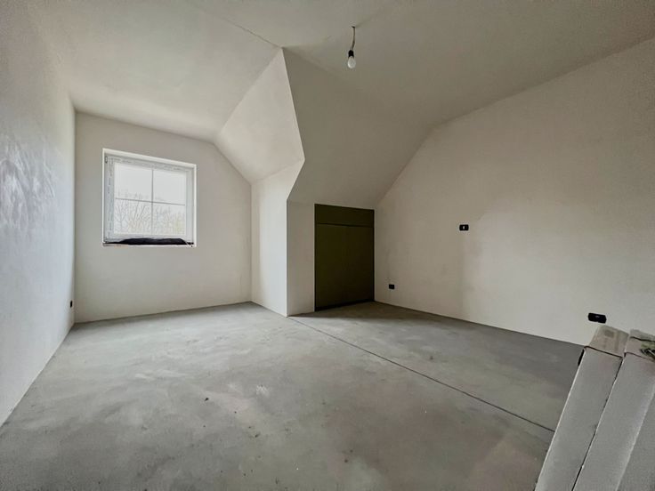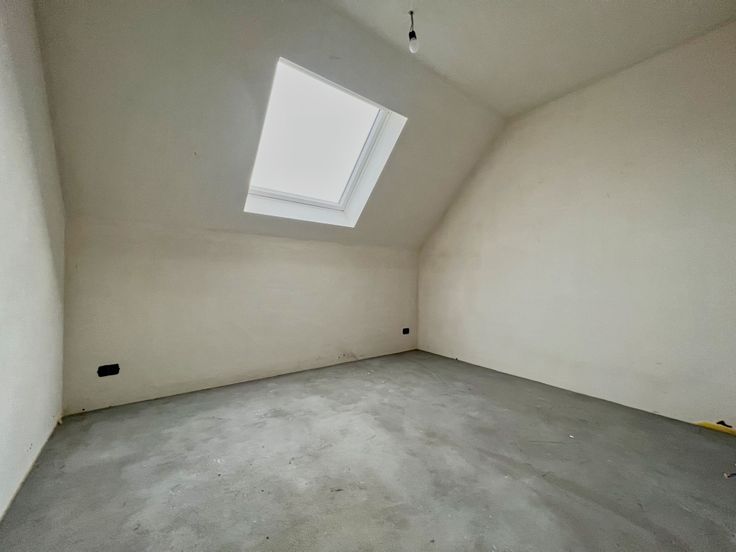 Indeling: Het gelijkvloers bestaat uit een inkomhal met gastentoilet, een lichtrijke leefruimte met open keuken en aansluitende, ruime berging. Op de eerste verdieping zijn er 4 slaapkamers, een ingerichte badkamer (lavabomeubel, inloopdouche en ligbad) alsook een afzonderlijk toilet.