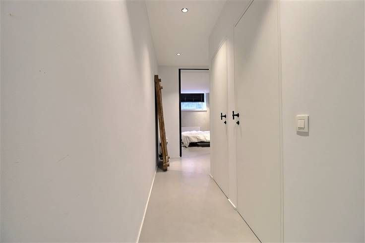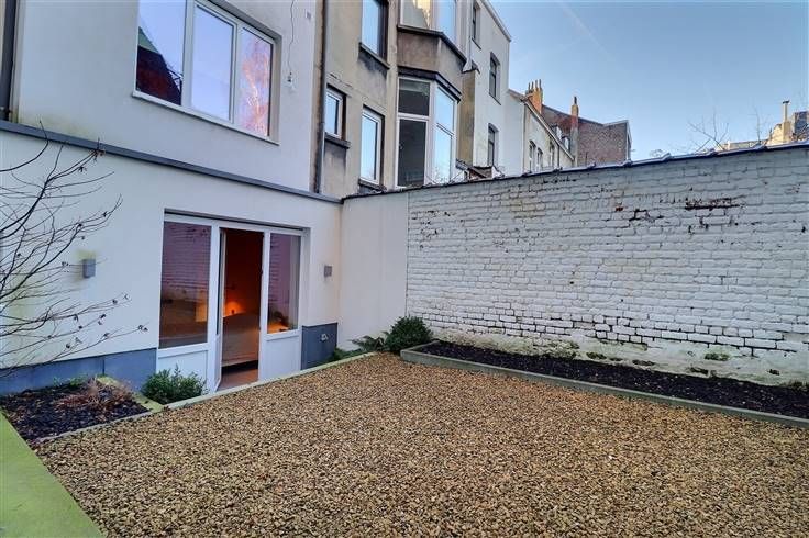 A l'entre sol: Deux belles chambres meublées (lits, dressings,...) de +- 15m² - Une salle de douche moderne - Un WC séparé - Un accèsau jardin/terrasse situé à l'arrière de l'immeuble.