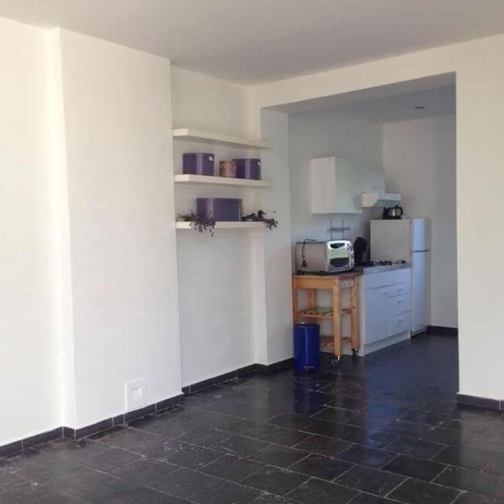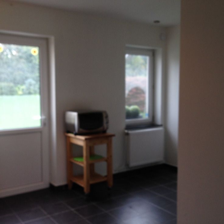l'appartement est composé : -cuisine semi équipée carrelage en pierre bleu, poêle a pellet, luminaires, stores, terasse, eau comprise... situé à 3km de Mons et à 1km des autoroutes; possibilité de location de boxe pour chevaux la propriété dispose d'un jardin commun qui est éclairé le soir; le parking est sécurisé. Garantie locative : 2 mois de loyer. Animaux non admis
