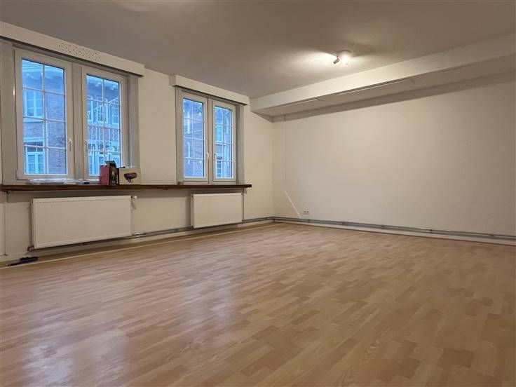 Gelegen op de 1e verdieping zonder lift, bestaat dit appartement van 62m² uit: een inkomhal van 3m², een grote woonkamer van 32,5m², een ingerichte keuken van 7,6m², een douchekamer van 4,8m² en een slaapkamer van 14,5m²